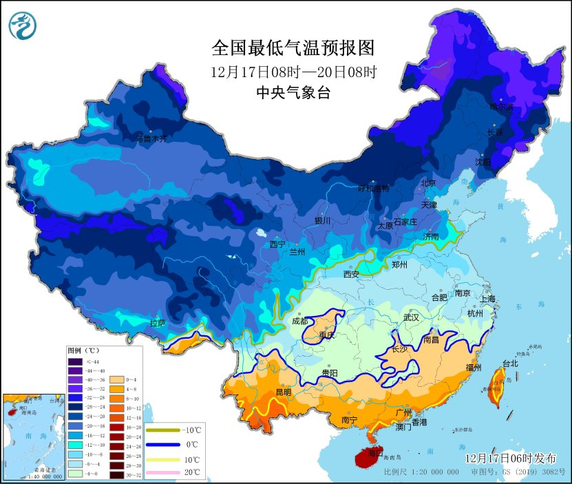中央气象台17日6时继续发布低温黄色预警。未来一周,我国大部地区气温将持续偏低。预计17日08时至20日08时,新疆北部、西北地区中东部、内蒙古、华北地区、东北地区、黄淮、江淮、江汉、江南北部、贵州等地部分地区日最低气温较历史同期偏低5℃以上,其中西北地区东部、内蒙古、东北地区、华北地区、黄淮中东部、江淮东部等地部分地区日最低气温较历史同期偏低7℃以上,最低气温0℃线将位于贵州南部至江南北部一带。