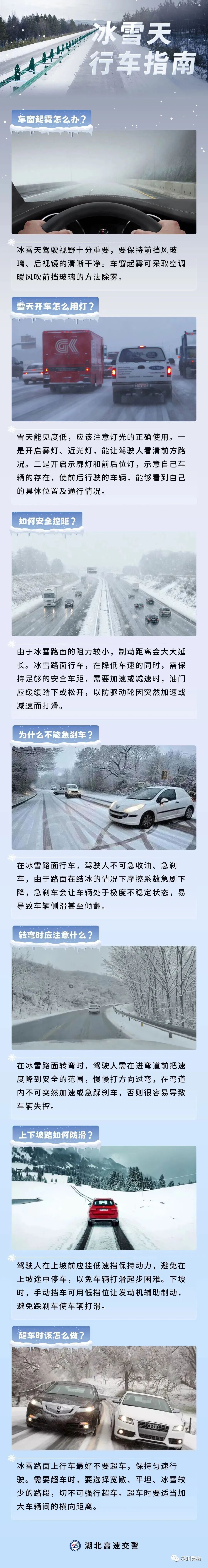 冰雪天气,驾车出行应该注意些什么呢?这份冬季行车指南,请收藏转发!