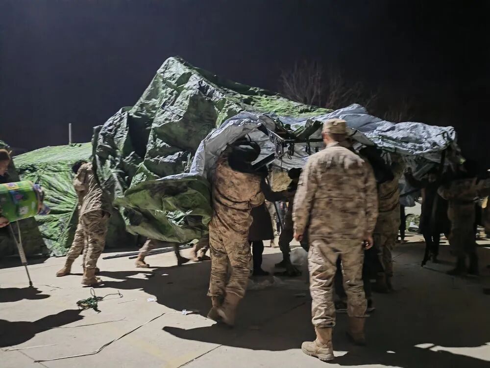 昨晚是灾后安置第一夜,凛冽的严寒中,各项救援保供工作有序推进,忙碌中透着些许温暖。