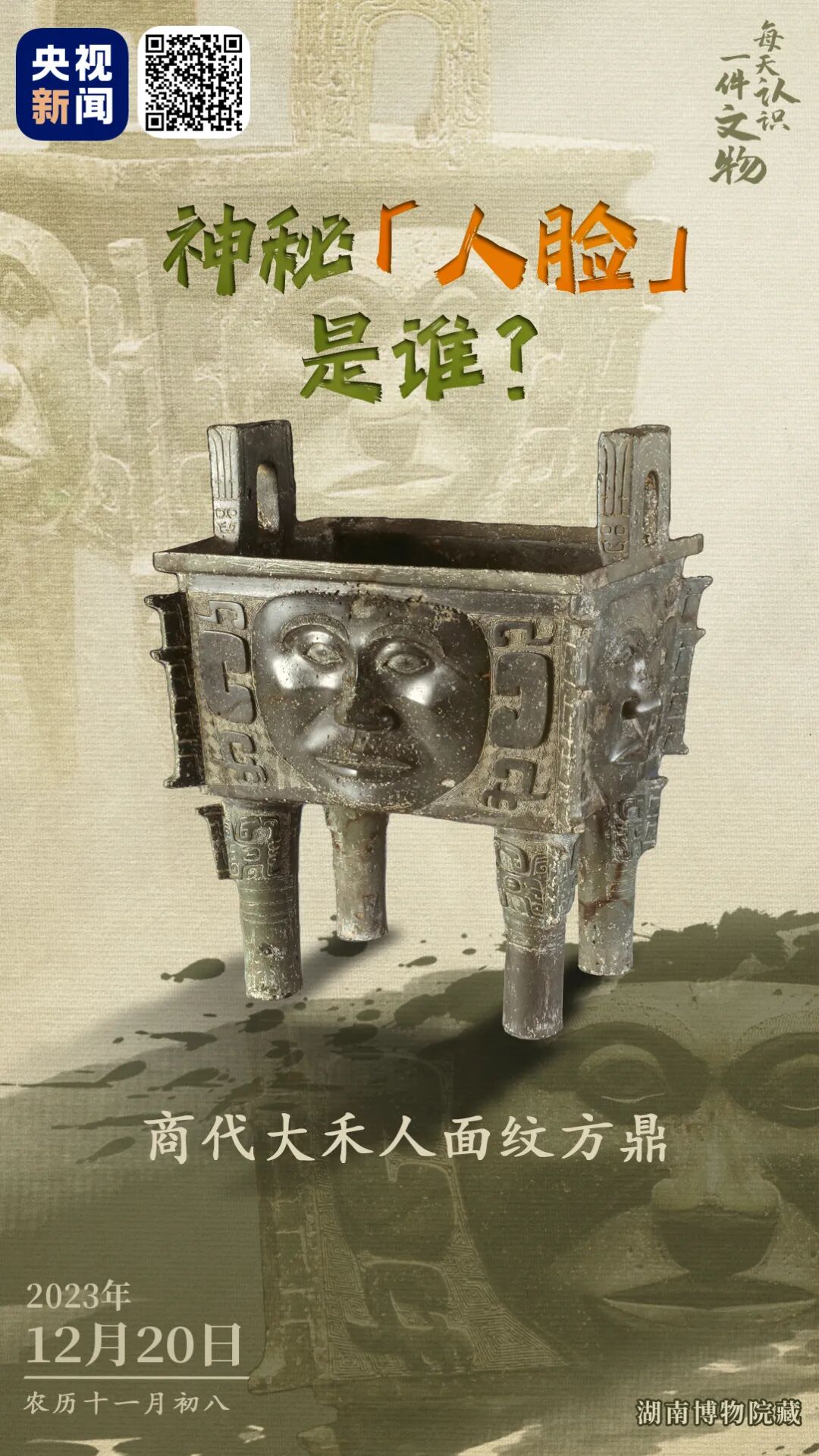 商代大禾人面纹方鼎是我国目前唯一以人面纹为饰的鼎,上面的“人脸”圆脸圆眼,鼻大嘴大,额部两侧有角,下巴两侧有爪,是半人半兽的图腾。鼎上铸铭“大禾”二字,承载着古人对丰收的渴望。