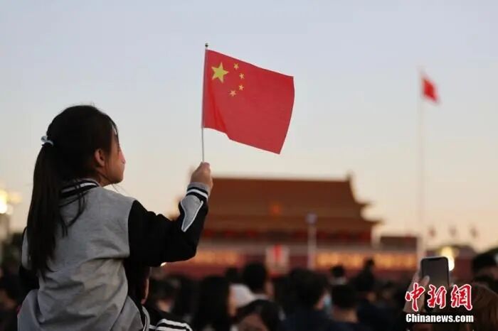 资料图:2023年10月1日清晨,隆重的升国旗仪式在北京天安门广场举行。中新社记者 盛佳鹏 摄