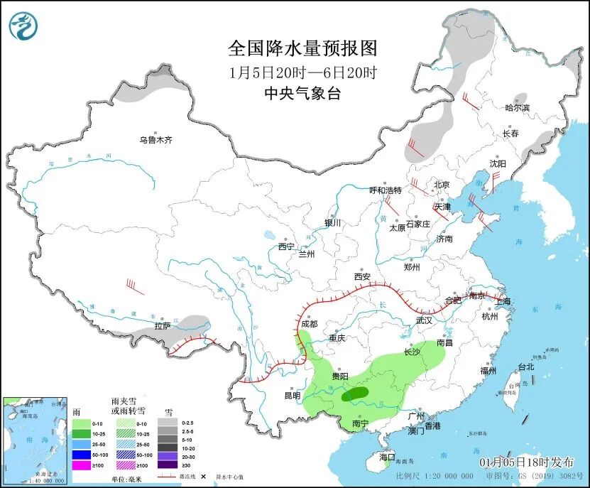 中央气象台预计,5日20时至6日20时,新疆北疆北部、内蒙古东部、黑龙江东北部、吉林长白山区等地部分地区有小雪,局地中雪。湖南中南部、贵州南部、云南东部、广西大部等地部分地区有小雨,局地有中雨。