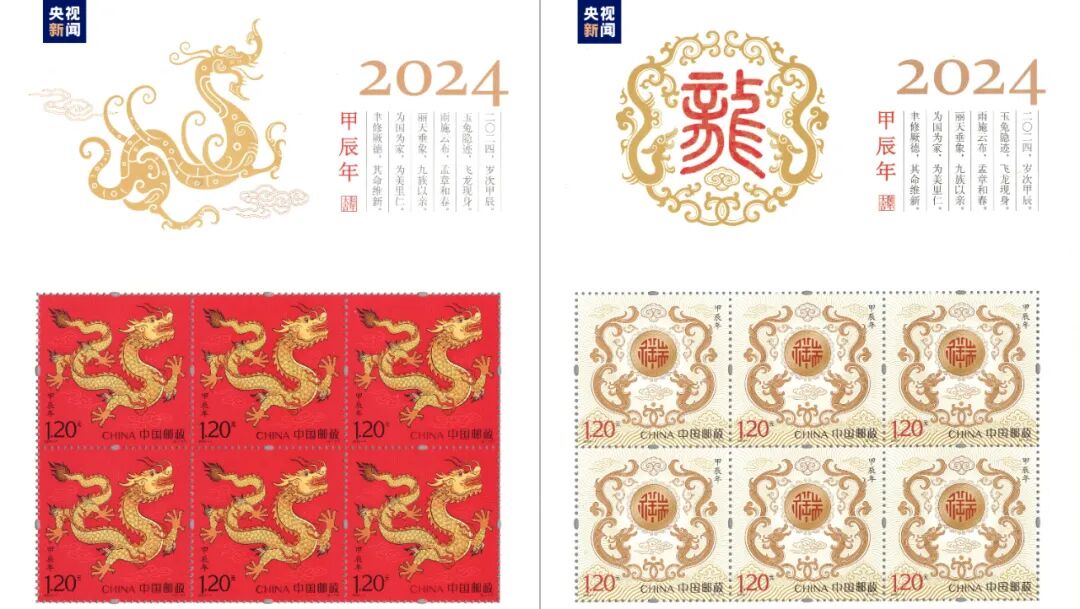 5日,中国邮政发行《甲辰年》特种邮票。邮票一套两枚,图案分别为“天龙行健”和“辰龙献瑞”。