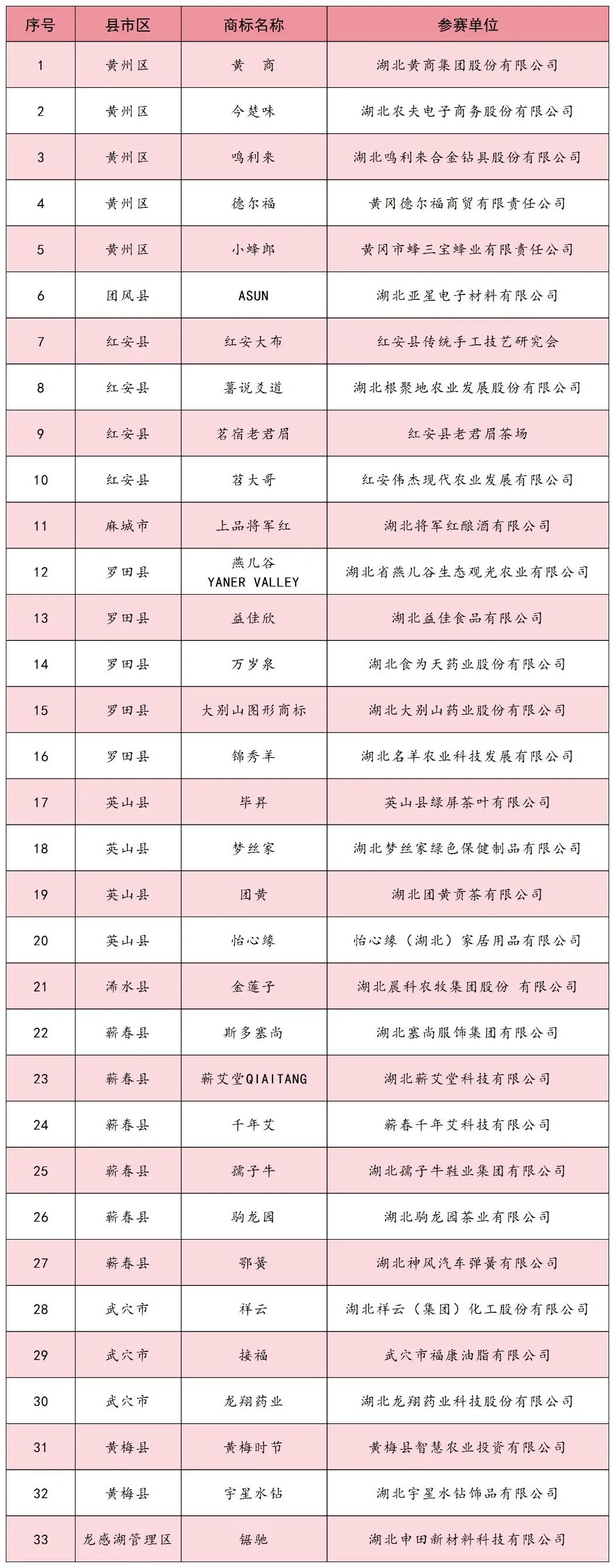 祝贺入围黄冈市商标品牌大赛决赛的项目!