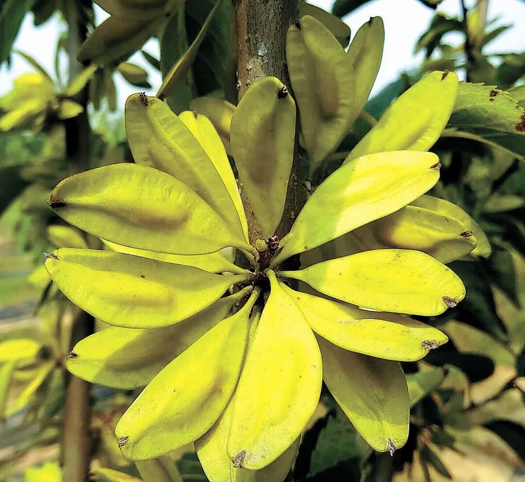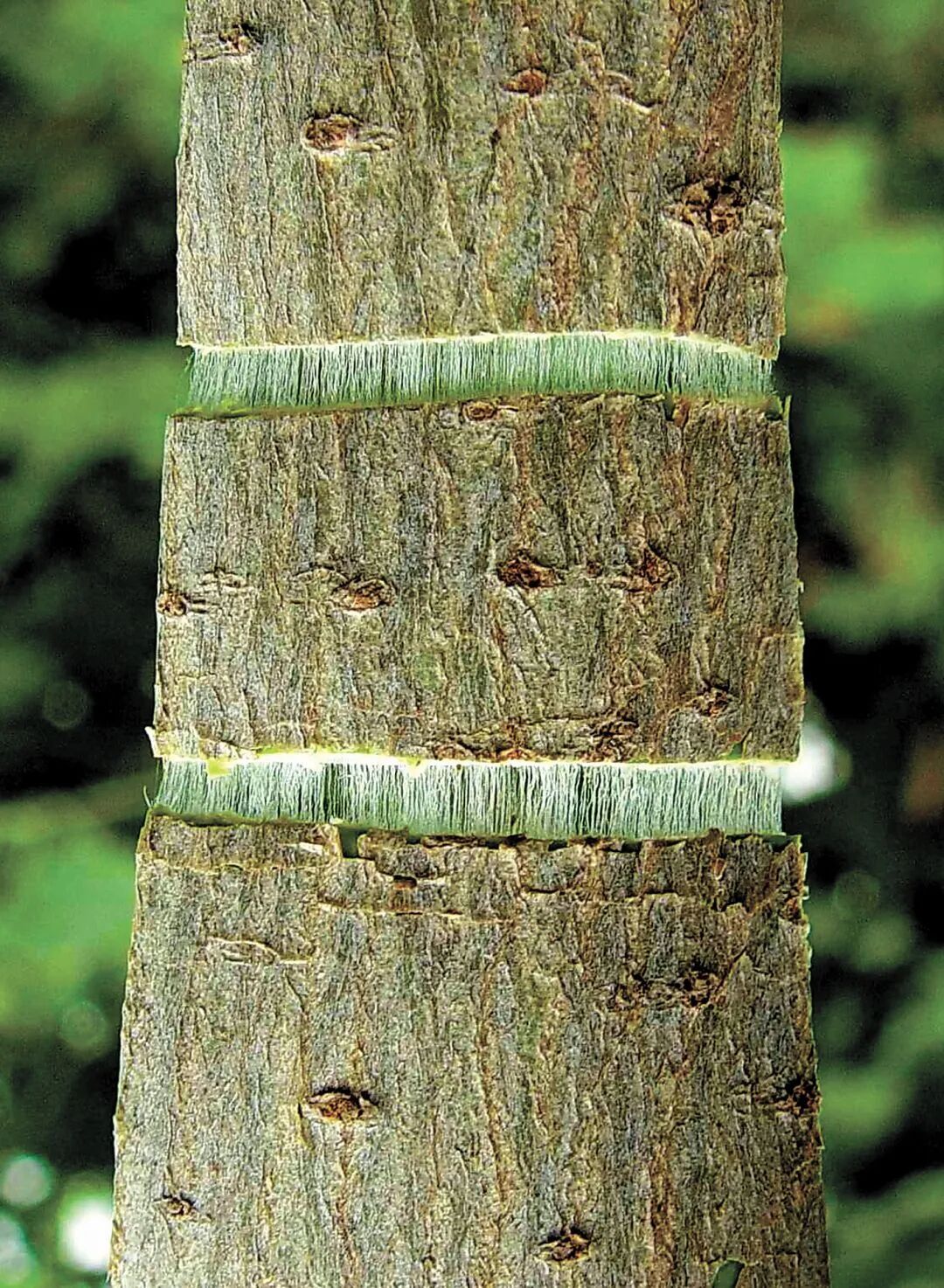 若将杜仲的树皮、树枝或叶子折断,你会看到有丝线粘连,就好像藕断丝连一般,所以它还有个民间叫法——扯丝皮。那些粘连的丝线就是杜仲的胶丝,高度绝缘,和天然橡胶是同分异构体,与产于三叶橡胶树的天然橡胶化学成分相同,是世界第二大天然橡胶资源。