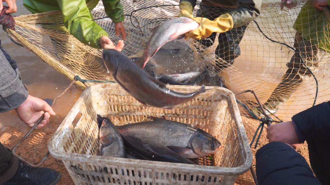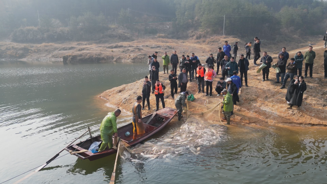 每到年关,英山县都有捕鱼的习俗,寓意着年年有余。眼下,新年的脚步越来越近,又到了一年冬季捕捞上市的好时节。近日,英山县神峰山庄养鱼基地热闹开捕,渔民们收获着丰收的喜悦。