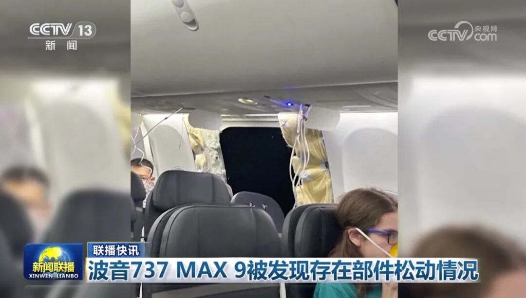 △5日,美国阿拉斯加航空公司一架波音737 MAX 9型客机起飞后不久发生事故,机舱侧面一处门塞脱落。