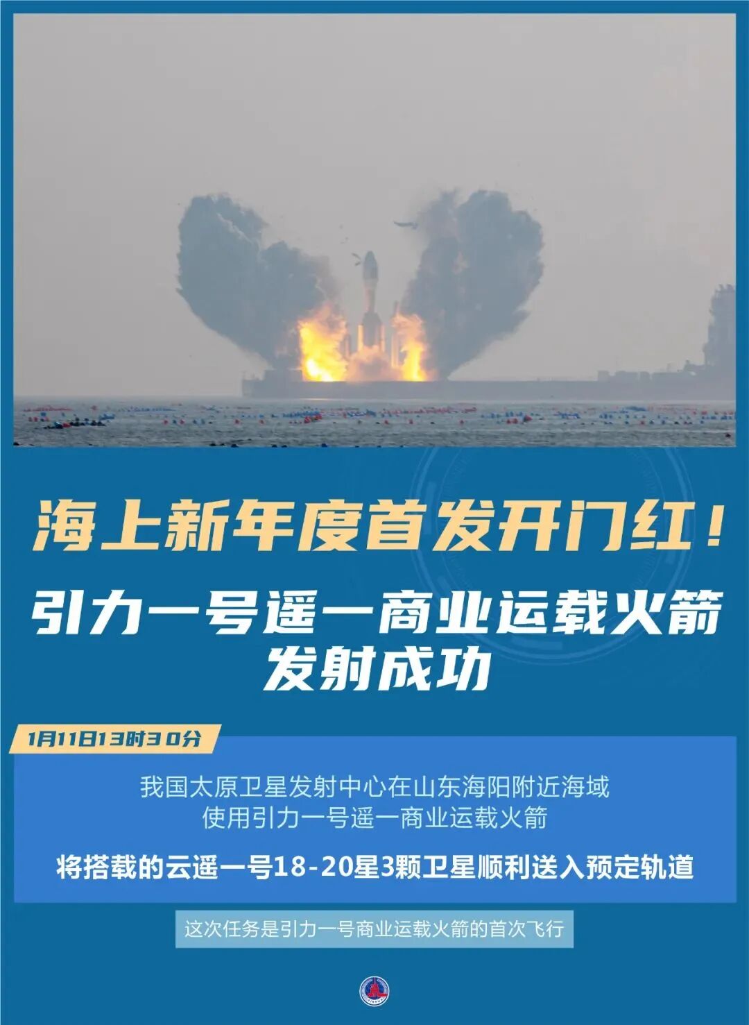 全球运力最大固体运载火箭引力一号发射成功。
