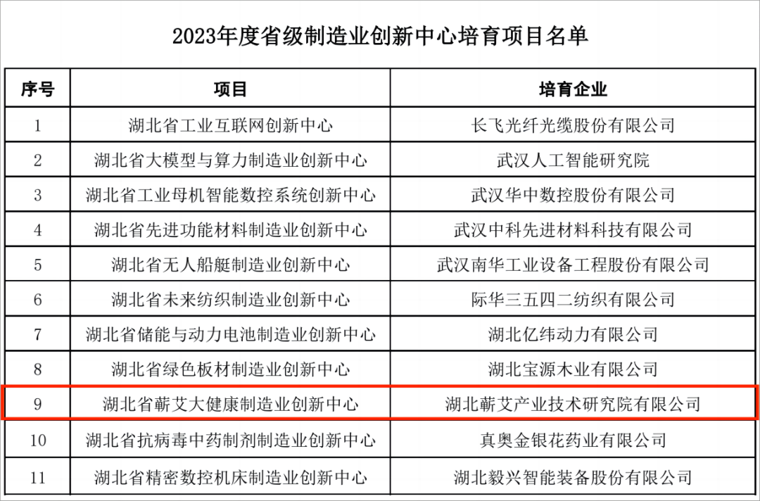 △蕲艾大健康制造业创新中心上榜2023年省级制造业创新中心培育名单