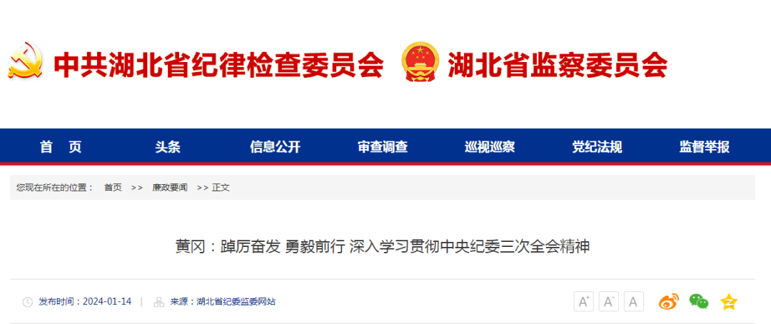 1月8日,二十届中央纪律检查委员会第三次全体会议召开。黄冈市各级纪委监委及时组织学习全会相关报道,深学细悟全会精神,推动全会精神在黄冈落地生根。