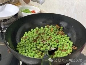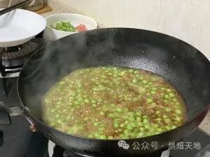 ③焖煮中途可以翻一下,让所有豌豆受热均匀。