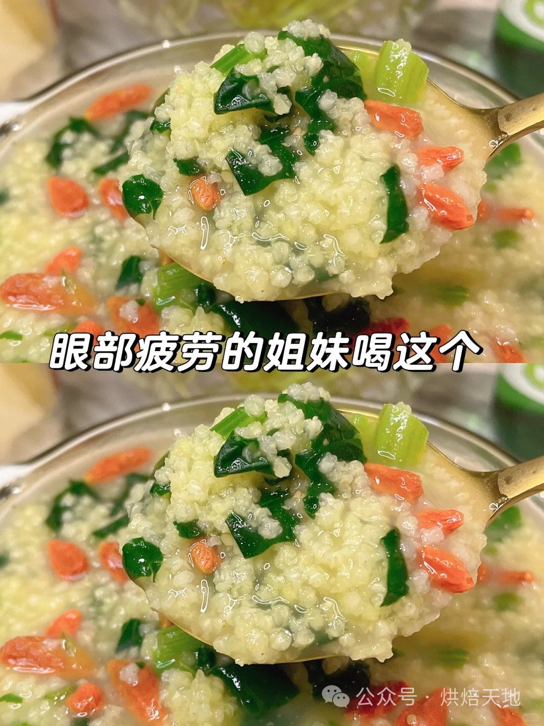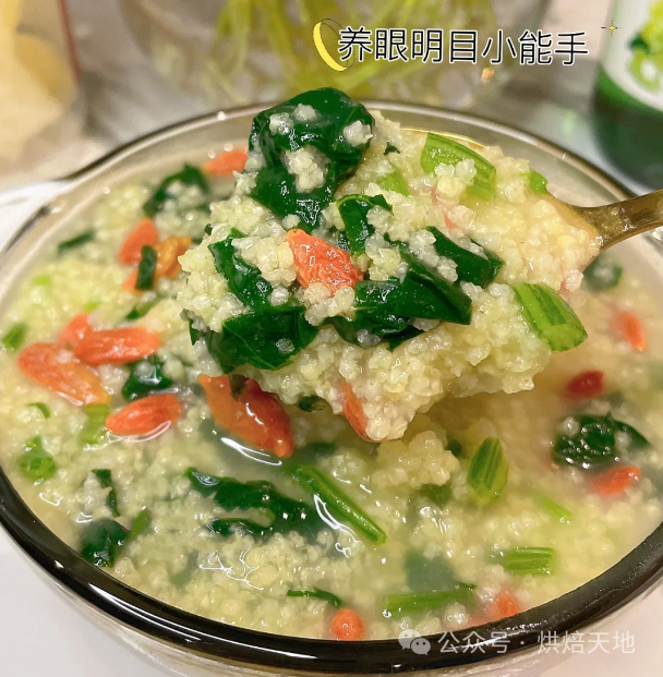 菠菜中含有丰富的叶黄素、胡萝卜素,叶黄素对于预防眼睛衰老导致的“视网膜黄斑变性”十分有效,叶黄素它是一种强效的抗氧化剂,可以帮助过滤有害的蓝光,都能对眼睛起到很好的保护作用,下面跟小编一起来看下今天分享的3个护眼食谱!菠菜枸杞粥