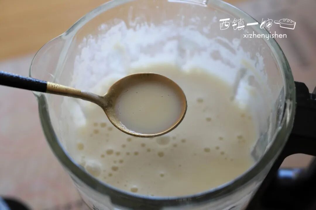 2、程序结束后就是细腻的豆浆了,放在一边备用。如果你的破壁机不能加热就是人工煮沸即可,但一定要煮到沸腾后再煮几分钟避免假沸。