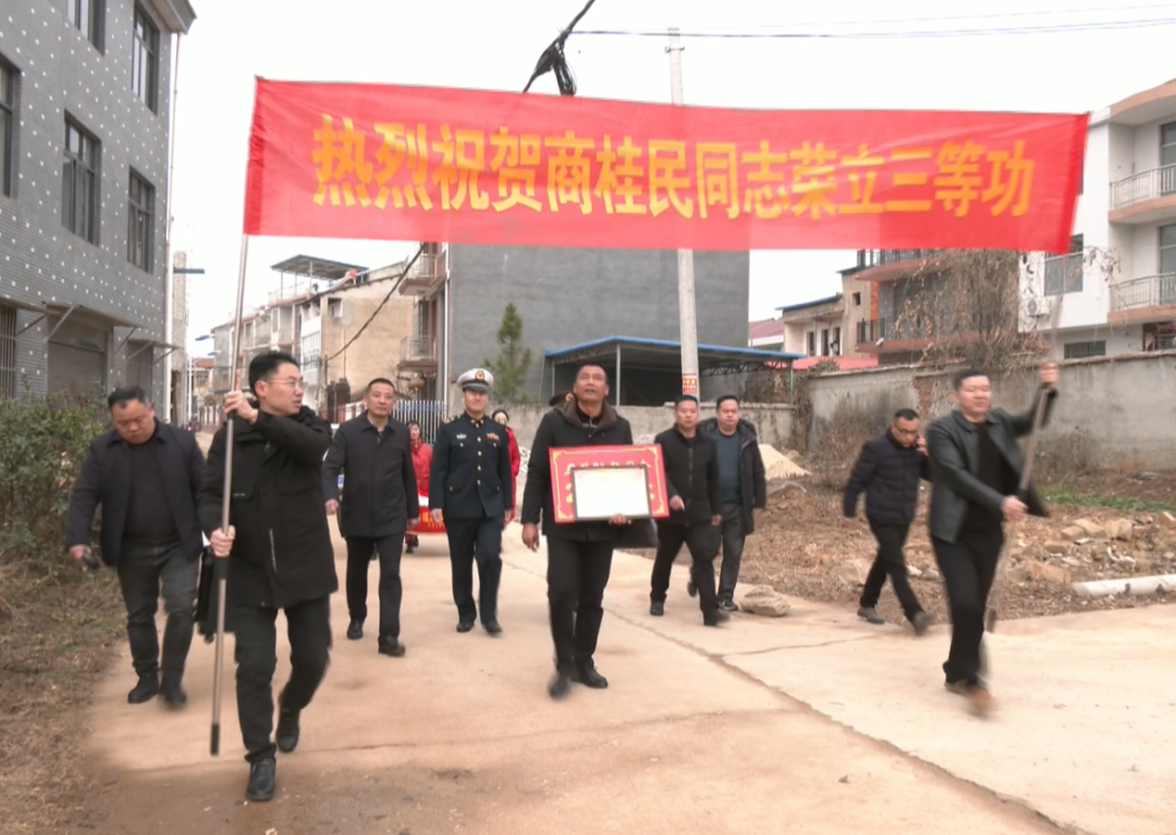 军营建功勋,家乡传美名。15日,黄梅县人武部、县退役军人事务局以及商桂民所在部队有关负责人,专程来到黄梅镇商河村,将“三等功”立功奖状和慰问金送到黄梅县现役军人商桂民的家中。