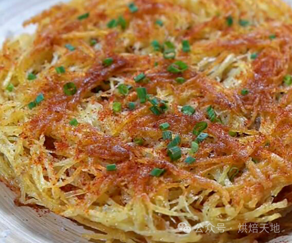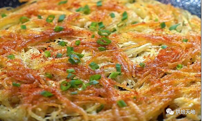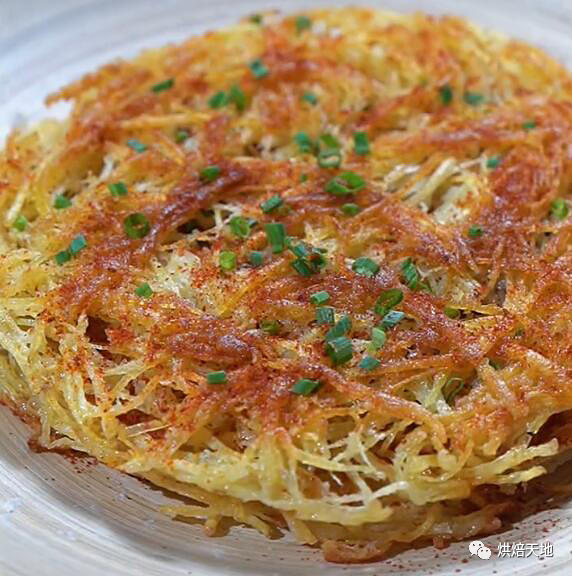 小贴士☆土豆丝尽量切细一点,比较容易煎熟,椒盐粉可以用辣椒粉加点盐代替。☆重点在于把土豆丝整理成大饼,不散,可以喷洒点水,不然太干了可能不易成饼状,不过水不能洒多了,要保证煎的饼酥脆。