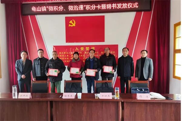图为龟山镇举行“微积分、微治理”积分卡暨聘书发放仪式