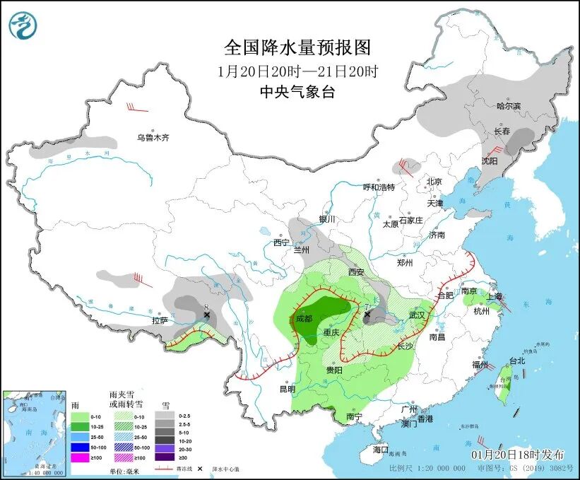 中央气象台预计,20日20时至21日20时,内蒙古中东部、东北地区大部、西藏东部、西北地区东部、西南地区东南部、江汉东部、江南西北部等地的部分地区有小雪或雨夹雪,其中部分地区有中到大雪。西北地区东南部、湖北东部、湖南南部、川西高原北部、西南地区东部、华南北部和西部、台湾岛等地的部分地区有小到中雨。