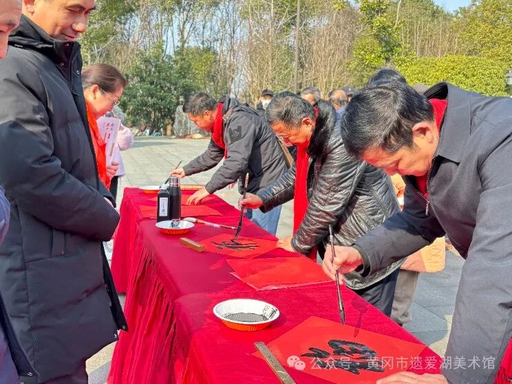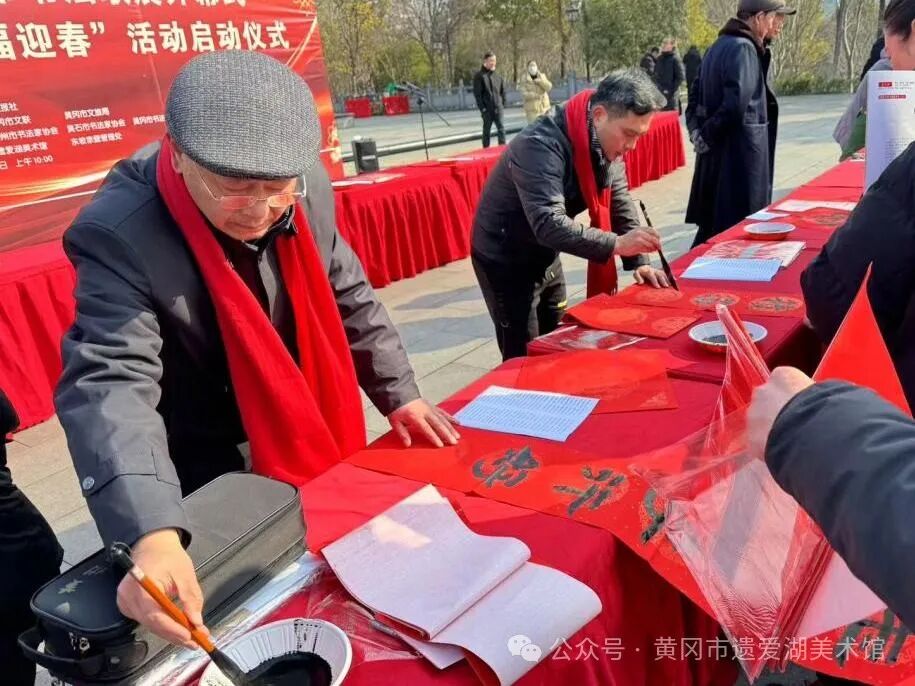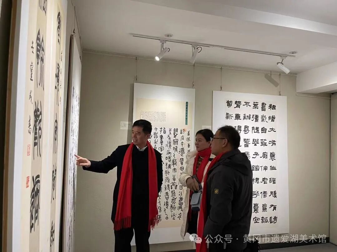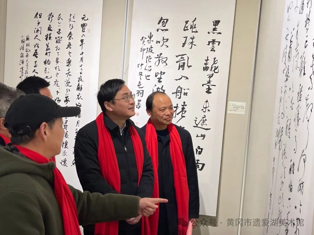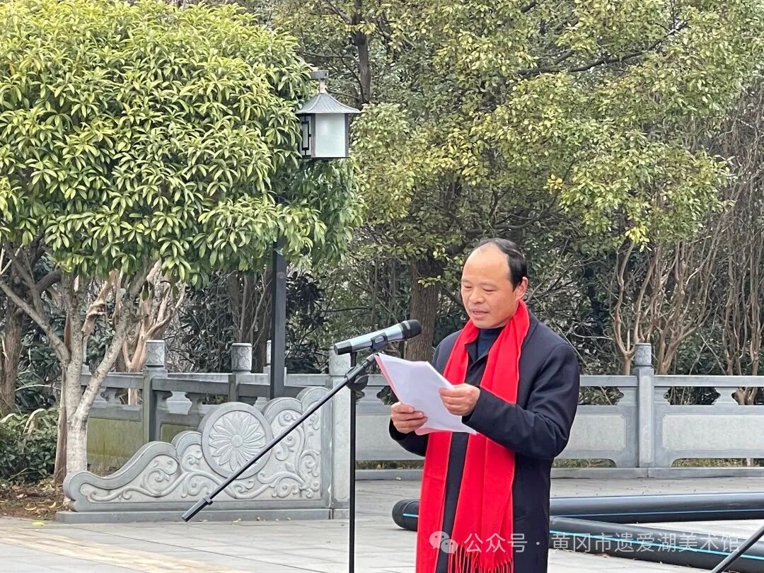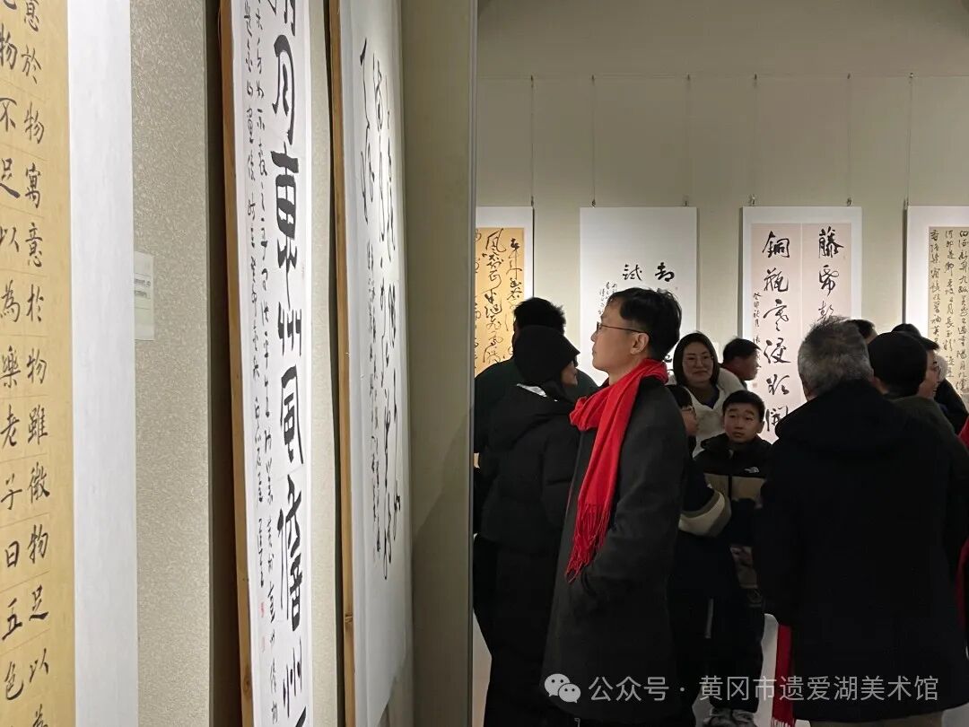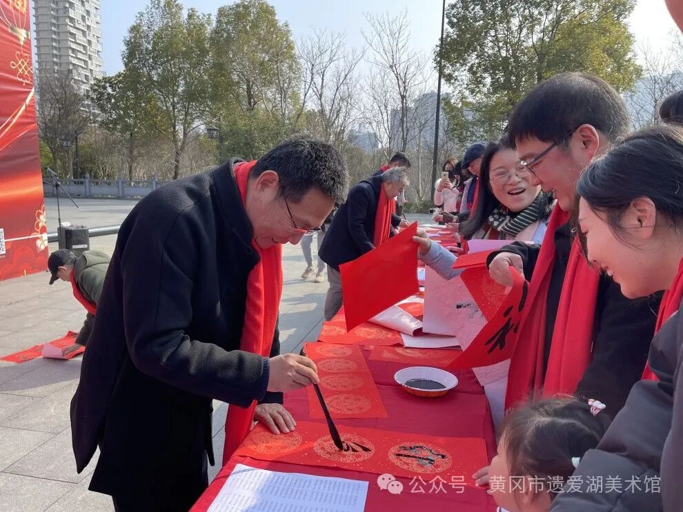 开幕式由黄冈市文联主席秦龙志主持,湖北省文联副主席、省书协主席孟庆星,《书法报》副主编赵志成,黄冈市委宣传部副部长吴敬秋为本次活动致辞。遗爱湖风景区管理处主任周金中、副主任柯辉等领导及武汉、鄂州、黄石、黄冈四个城市参展作者代表受邀出席开幕仪式。开幕仪式结束后书法艺术家们现场为前来参观的游客市民书写新春对联,会场的气氛十分热烈。