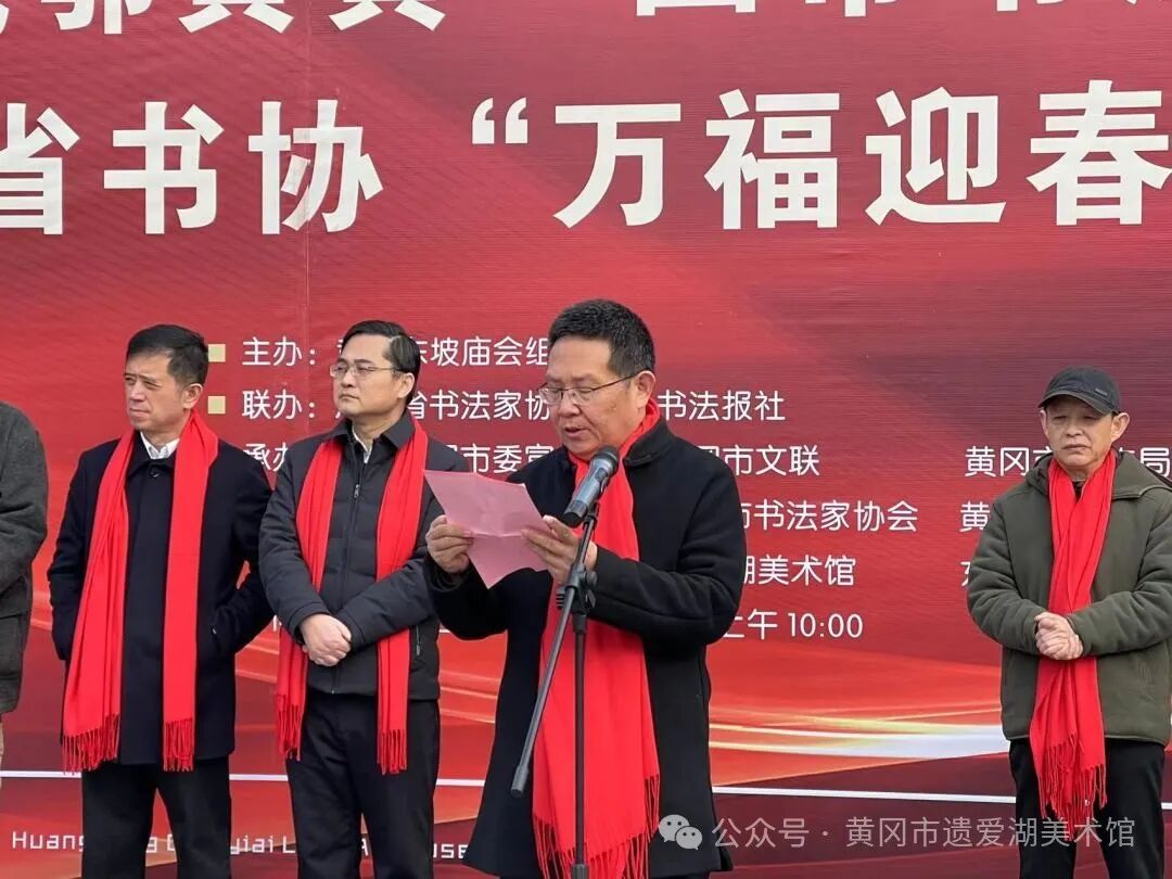 2024年1月21日上午,在黄冈市遗爱湖美术馆举行“2024’东坡庙会 尚意千载•东坡遗韵——武鄂黄黄四市书法联展” 开幕式暨湖北省书法家协会“万福迎春”活动启动仪式。