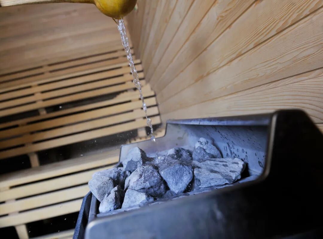 在热气腾腾的汗蒸房里放松的时候,你会感觉大汗直流,这是身体在消耗能量,如果空腹汗蒸,很容易出现低血糖性昏厥、虚脱的现象。也不要在过饱的情况下汗蒸,建议饭后 1 小时后再进入汗蒸房。