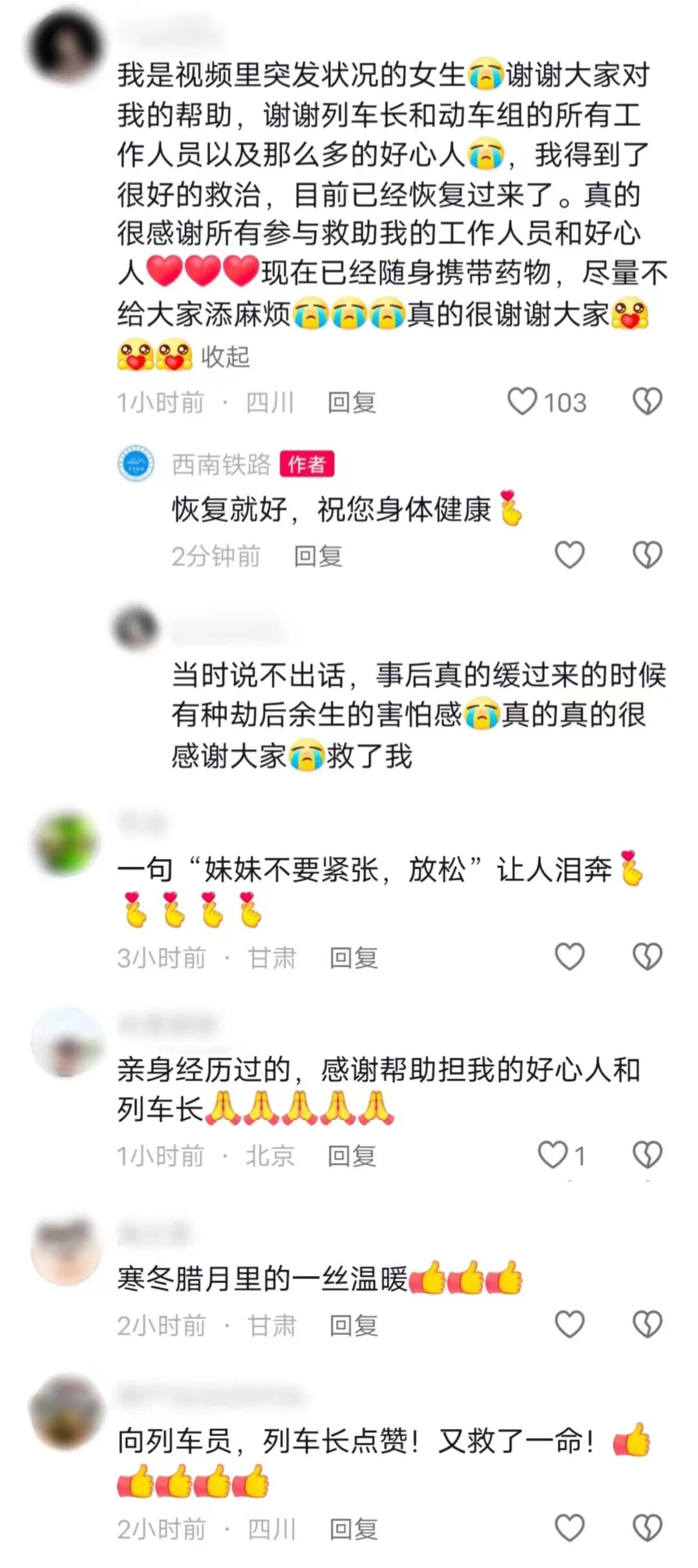 因旅客并无同行人员,列车长立即联系司机及铁路客运调度在前方有医疗条件的车站停车,并联系120到达现场等待。
