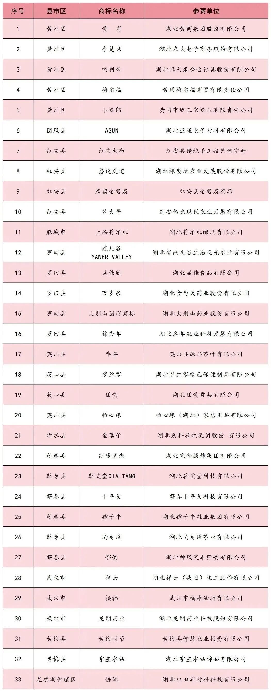 入围决赛名单(排名不分先后)48个项目晋级!黄冈市商标品牌大赛决赛入围名单出炉!