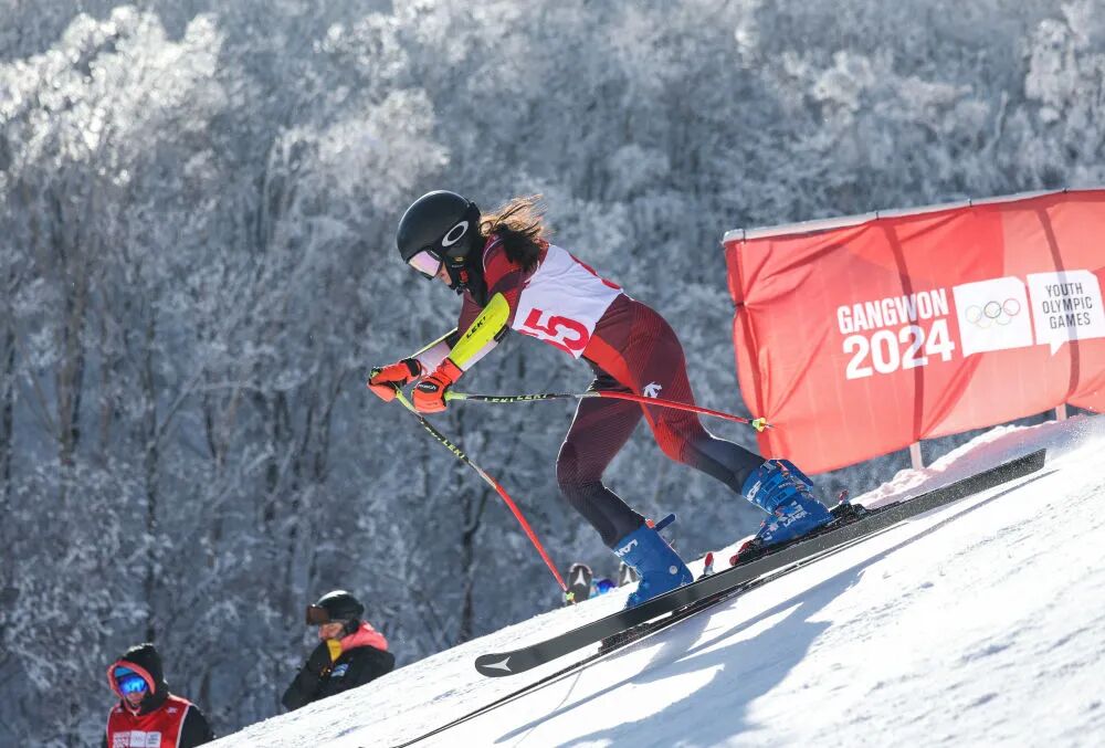 1月23日,2024年江原道冬青奥会高山滑雪女子大回转比赛在韩国旌善举行。新华社记者 胡虎虎 摄