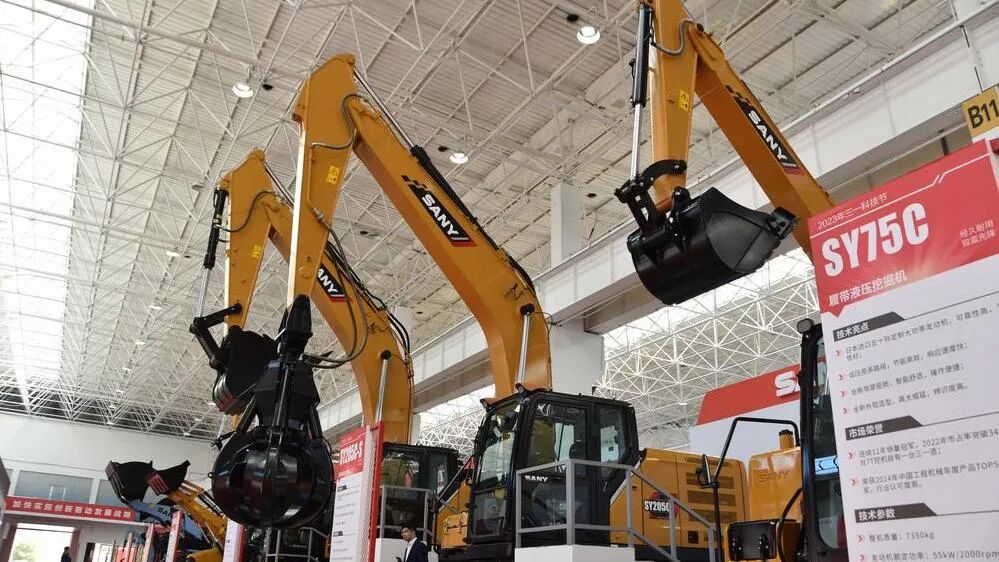 这是2023年3月31日在长沙“三一科技节”上拍摄的挖掘机。新华社记者 白田田 摄