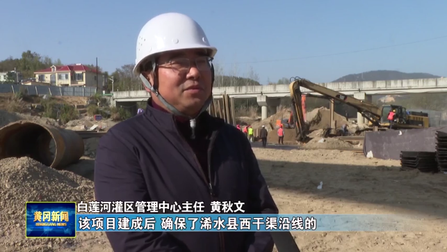 白莲河灌区管理中心主任 黄秋文:该项目建成后,确保了浠水县西干渠沿线的关口、清泉、竹瓦、团陂已经巴河等乡镇的31.35万亩的灌溉面积。
