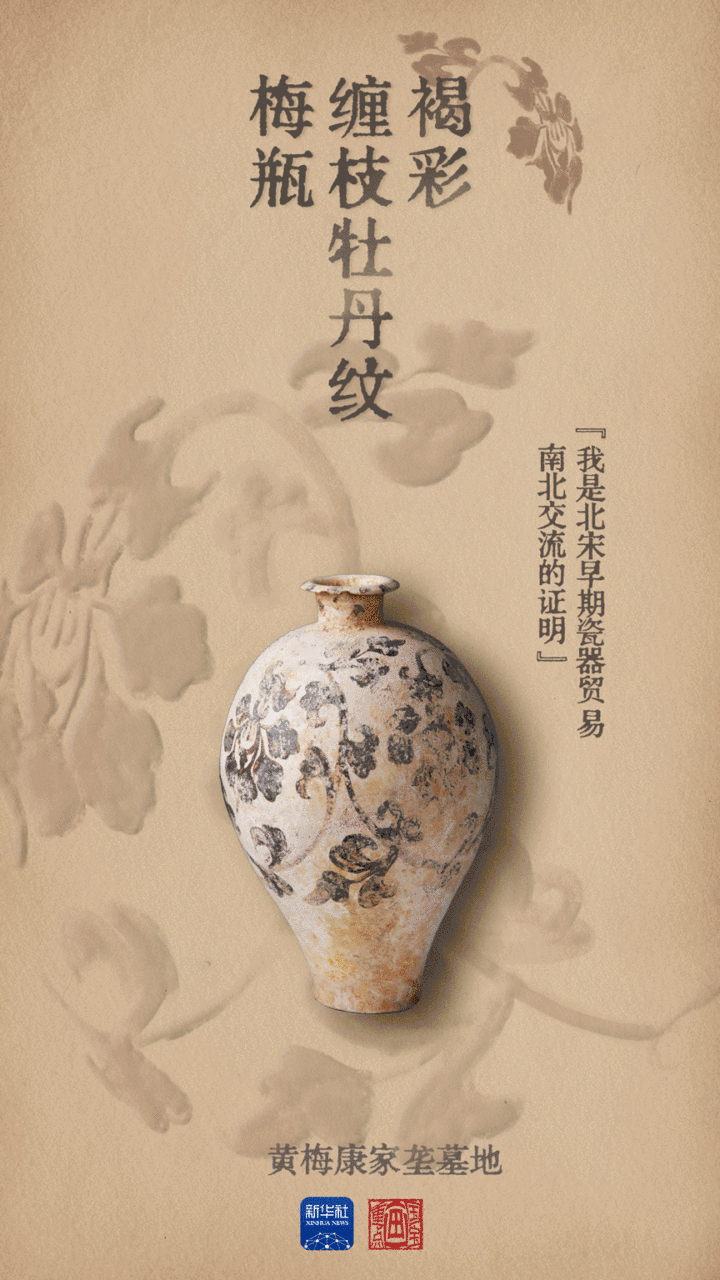 “网络人气奖”——黄梅康家垄墓地,墓地共清理发掘宋、明墓葬三座,其中 M1 为北宋纪年墓,出土瓷器釉色和品种十分丰富,褐彩缠枝牡丹纹梅瓶保存完好、引人瞩目。“同一墓葬随葬器物兼有南北方不同窑口的产品,对于研究北宋早期南北瓷器贸易交流及相关考古学文化具有重要价值”。该项目现场负责人凡国栋说,目前湖北地区已发掘宋墓 300 余座,其中纪年墓仅 13 座,M1 的下葬年代为治平三年(公元 1066 年),是北宋早期墓葬断代的极佳标尺。