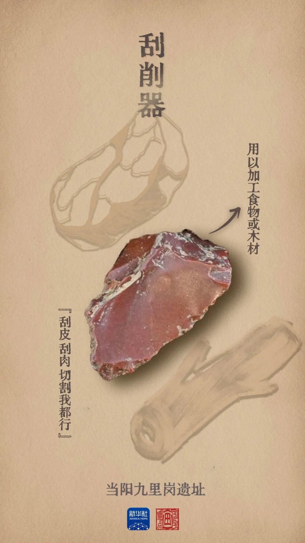 当阳九里岗遗址,地处鄂西山地向江汉平原过渡地带,遗存分布范围广、文化内涵丰富。新发现 21 处旧石器地点,共计采集石制品 300 余件,包括石核、手镐、砍砸器、刮削器等。原料主要采自附近的河滩砾石,该项目负责人向其芳说,这处石器初级加工场所。为探讨中国南方地区旧石器时代,文化面貌和发展演变,人群迁徙与技术交流提供了关键材料。