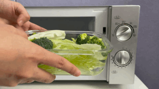 想吃清淡水煮菜,没必要起锅烧水。用微波炉,立省 10 分钟,还少洗一个锅!