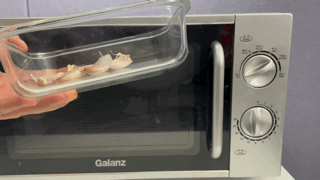 把大蒜掰开丢进微波炉,中高火“叮” 20 秒,取出后放凉,轻松完整去皮,不要太爽。
