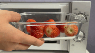草莓无脑丢碗里(切块更好),中高火“叮” 2~3 分钟,就能得到新鲜健康的草莓果酱!