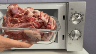 一个建议:肉买回来先处理成小块再冷冻,这样微波解冻时更快更均匀。如果肉体积太大容易受热不均,很可能表面快熟了,里面还是硬邦邦。