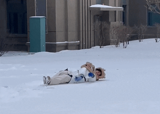 躺在厚厚的积雪上打滚、玩耍