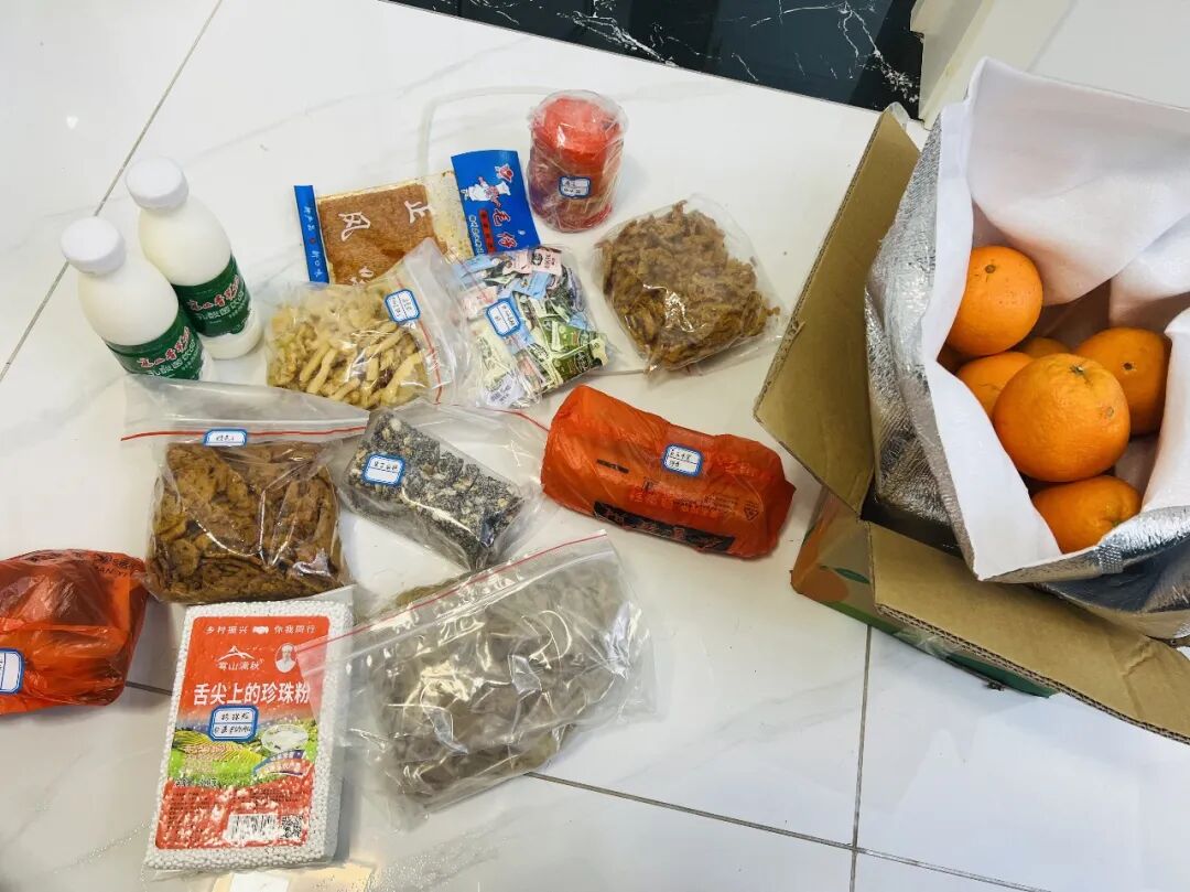 “赣南脐橙、腐乳、奶、珍珠粉、辣条、黑芝麻糕、米果、豆饼子……十多样的江西土特产”司增辉说“最让我破防的是两个江西小妹妹在每一袋特产外面都额外包了袋子,贴上标签手写注明特产的名称当地叫什么,俗称什么在其中的一袋鱼丝上写了品名‘鱼丝’,寓意‘余思’看到这两个字,我真的忍不住眼泪了细心的两个妹妹还发微信语音告知每一样东西怎么吃、怎么储存找来每一样特产的烹制方法以链接的形式发送过来真是太温暖了!”