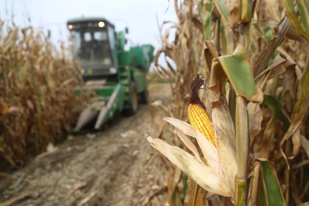 农民驾驶农机收割玉米。杨青摄(新华社)