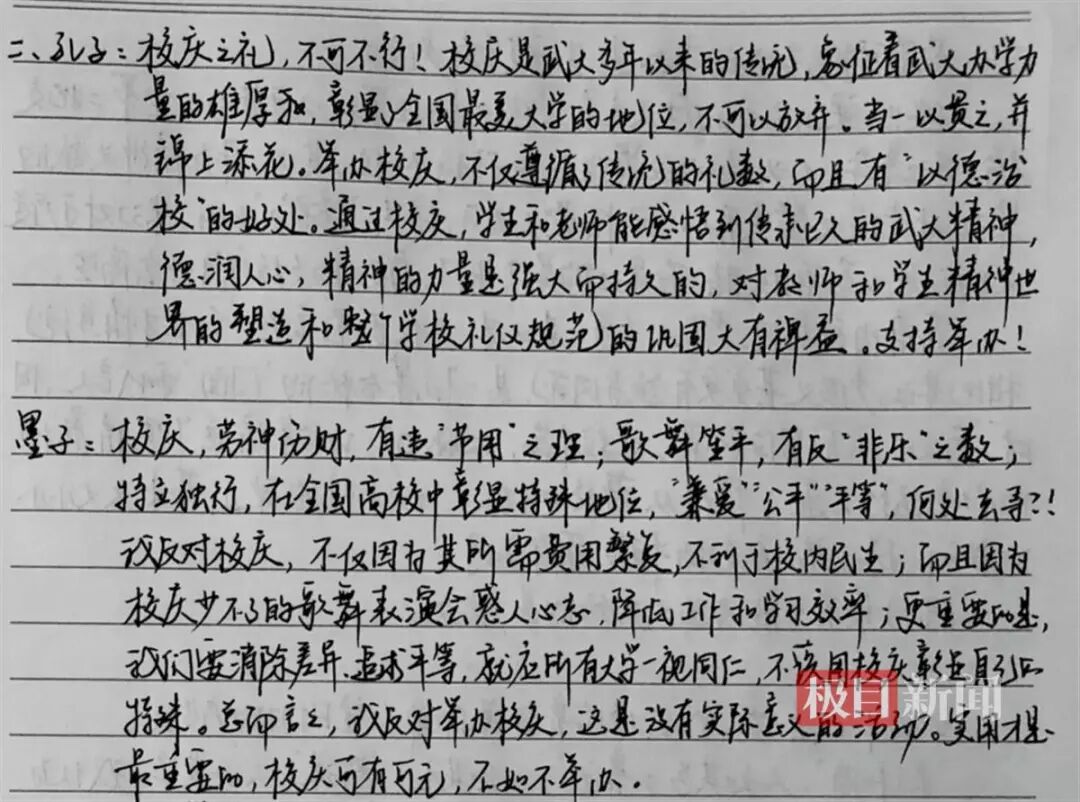 对于武大该不该办校庆,同学们普遍很好地担当了古代思想家的“代言人”。