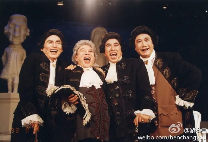 △游本昌与雷恪生、黄小立、李雪健合作话剧《老顽固》。
