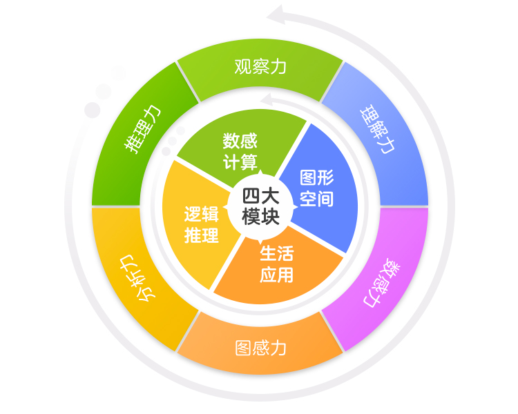 这套互动视频,将针对数学思维的6大核心能力,围绕数感计算、图形空间、逻辑推理和生活应用4大领域,帮助孩子锻炼相关思维。