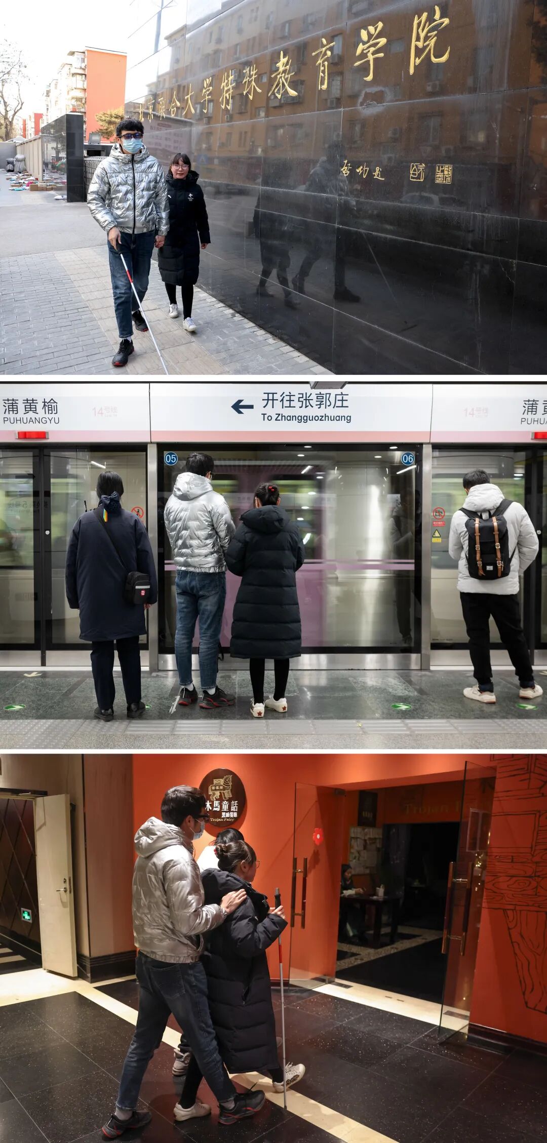 在路上时,杨德民一只手拿着盲杖探路,另一只手总会紧紧握着支鸣的手。