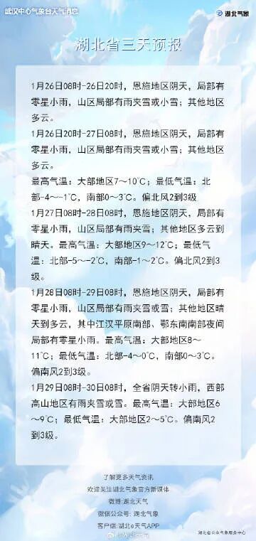 今明两天省内大部最高气温普遍在10℃以上,午后较温暖,但大后天受阴雨影响又将降至个位数,未来三天最低气温有波动,北部地区依旧在冰点以下,注意防寒保暖及用火用电安全。