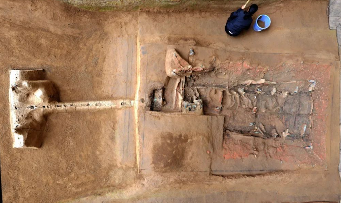 秦始皇帝陵博物院26日消息,秦始皇帝陵1号陪葬墓出土了一辆遗迹保存较为完整的四轮独辀木车,为研究秦汉时期丧葬用车制度提供了新资料。