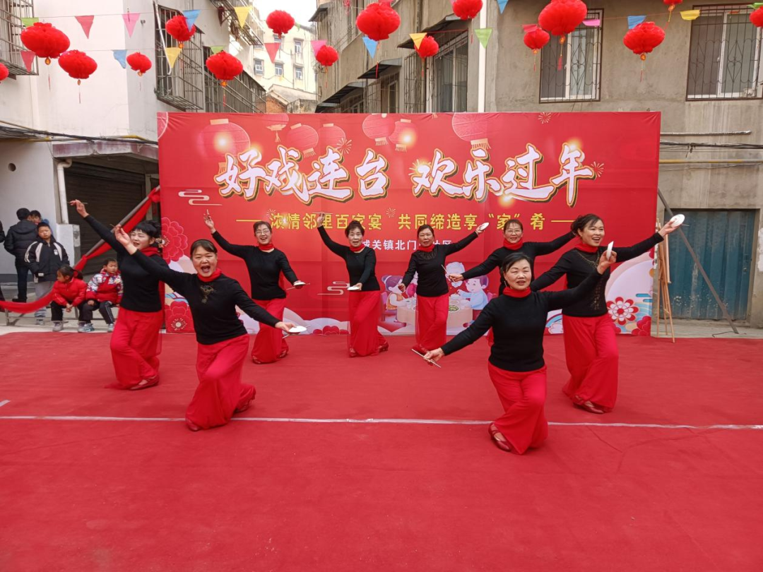 咚咚锵,咚咚锵……1月27日,红安县城关镇北门岗社区西村三巷广场人头攒动,欢声笑语此起彼伏。在这里,社区新时代文明实践站隆重举办了“好戏连台,欢乐过年——浓情邻里百家宴 共同缔造享‘家’肴”为主题的首届“百家宴”活动,整条小巷被大红灯笼点缀得吉祥欢乐,浓浓的年味令人沉醉。