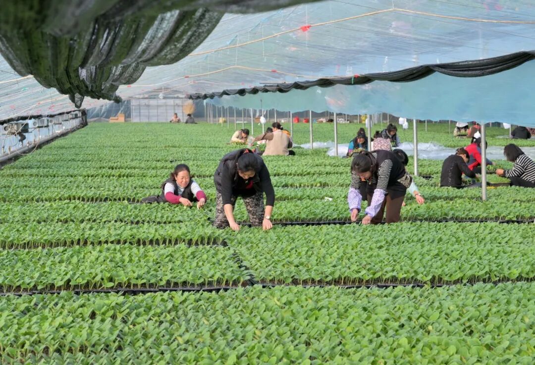 河北省滦州市一家蔬菜育苗合作社的社员在大棚内管护黄瓜秧苗。杨世尧摄(新华社)