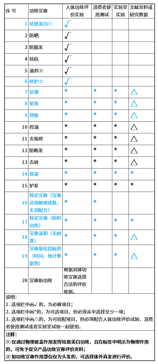根据这一份规定,所有的护肤品在宣称特定的功效时,都需要提交备案相应的评价依据,包括人体功效评价试验、消费者使用测试、实验室测试以及文献资料或研究数据。