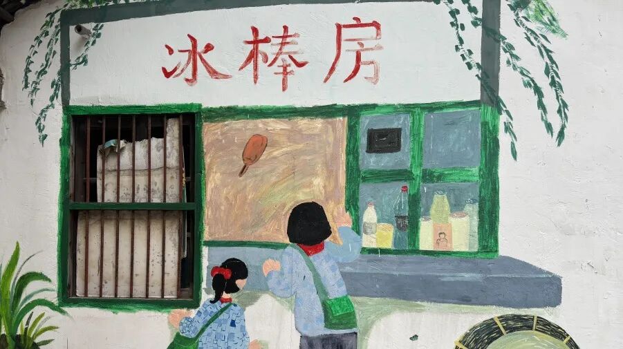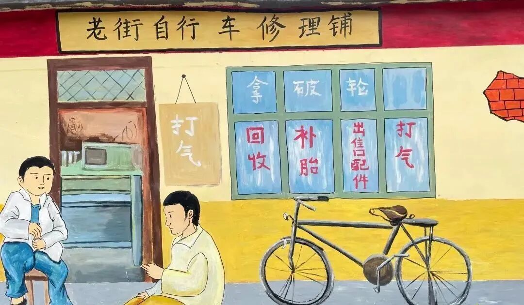 魏街汉川门社区的墙绘,还原了七八十年代汉川门社区的风貌,让单调的白墙也有了勃勃生机。