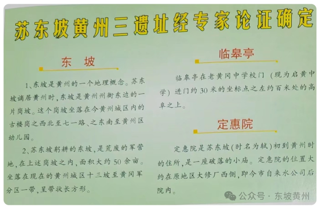 1、该项目选址符合市东坡文化研究会的论证结论。黄冈市东坡文化研究会是市委研究决定成立于2009年12月的社会团体,是为市委市政府推进东坡文化研究及利用的智囊团单位,其业务指导是中国苏轼研究学会。早在2012年7月18日,市委市政府要求市东坡文化研究会召开了苏东坡黄州遗址遗迹论证会,明确了“东坡”“临皋亭”的具体位置,即东坡位于十三坡,临皋亭位于老黄冈中学内(现为启黄中学的临皋亭)。关于黄州沙湖遗址,最靠近苏东坡诗词文意的还是道仁湖。此遗址也得到了苏学界普遍认可。