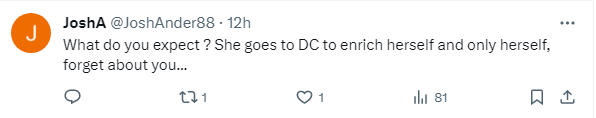 还有人称:“你们指望什么呢?她去华盛顿只肥了自己,忘记你们……”